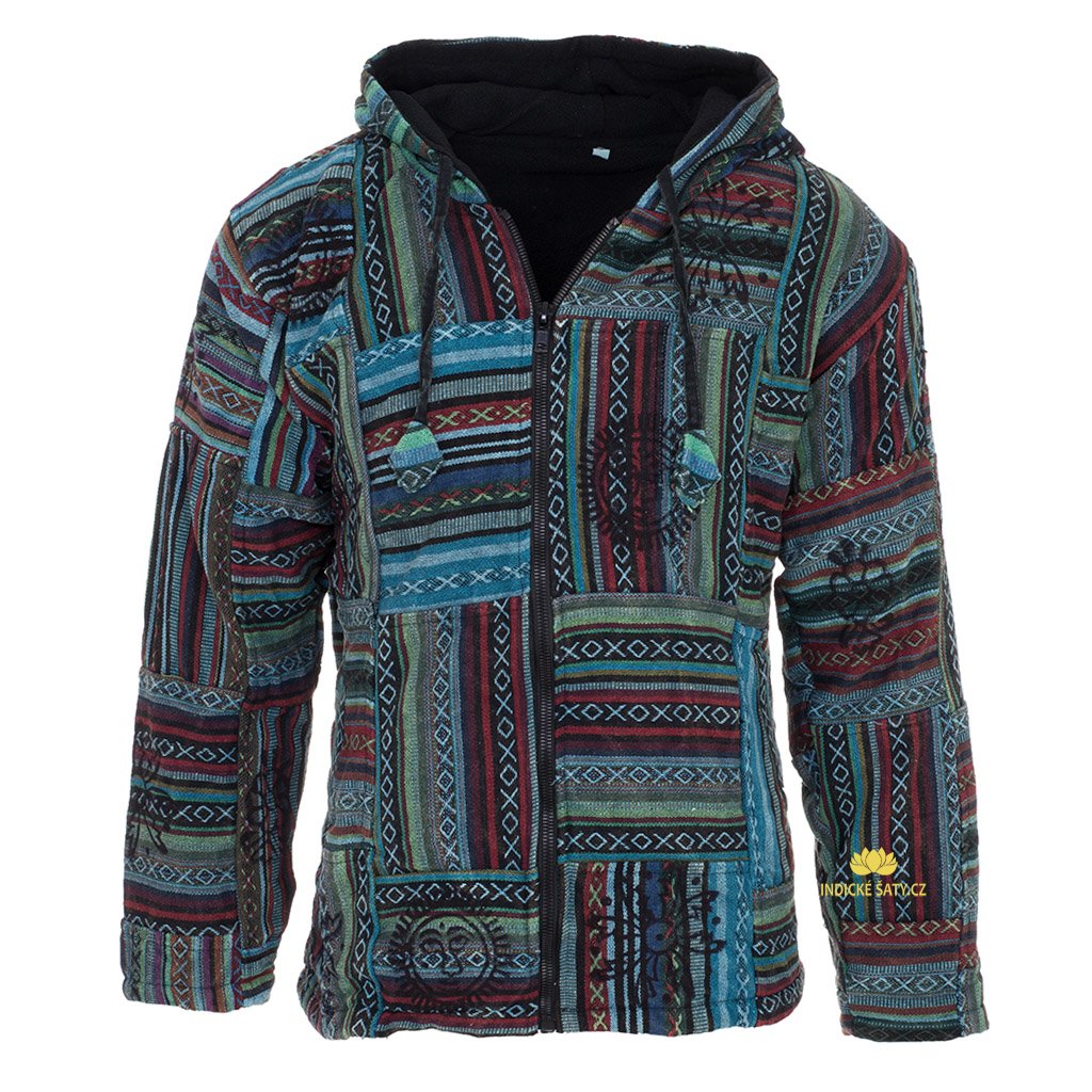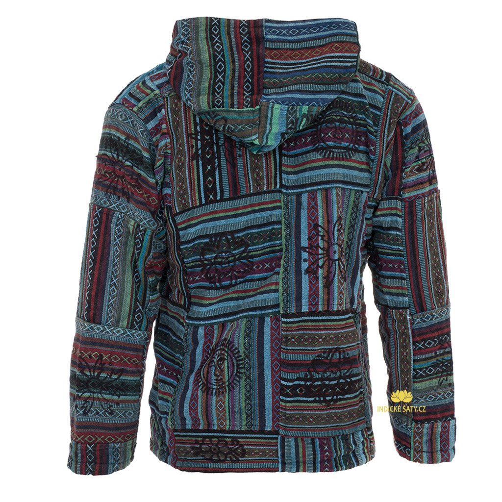 Tento kabát z Nepálu je ušitý z velmi pevné, festovní kabátové bavlny a podšitý fleesem (měkký a hřejivý materiál vyrobený z umělých vláken, dobře udržuje teplo, příjemný na nošení). Kabát je teplý, vhodný od podzimu do jara.