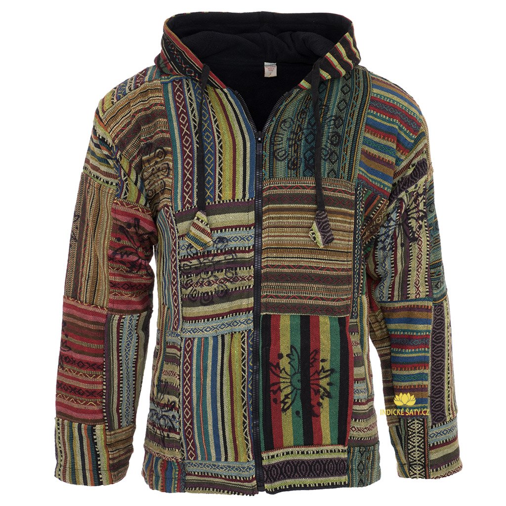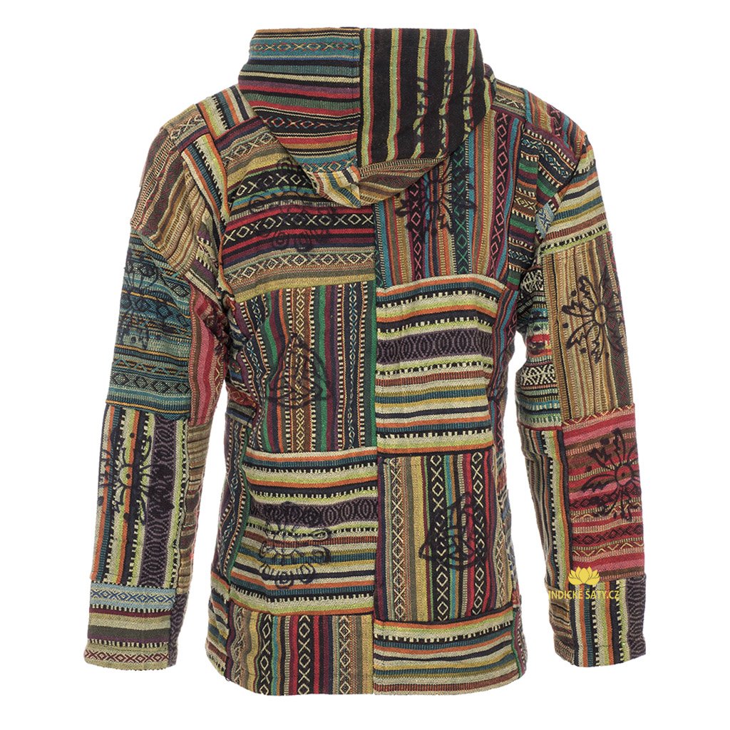 Tento kabát z Nepálu je ušitý z velmi pevné, festovní kabátové bavlny a podšitý fleesem (měkký a hřejivý materiál vyrobený z umělých vláken, dobře udržuje teplo, příjemný na nošení). Kabát je teplý, vhodný od podzimu do jara.