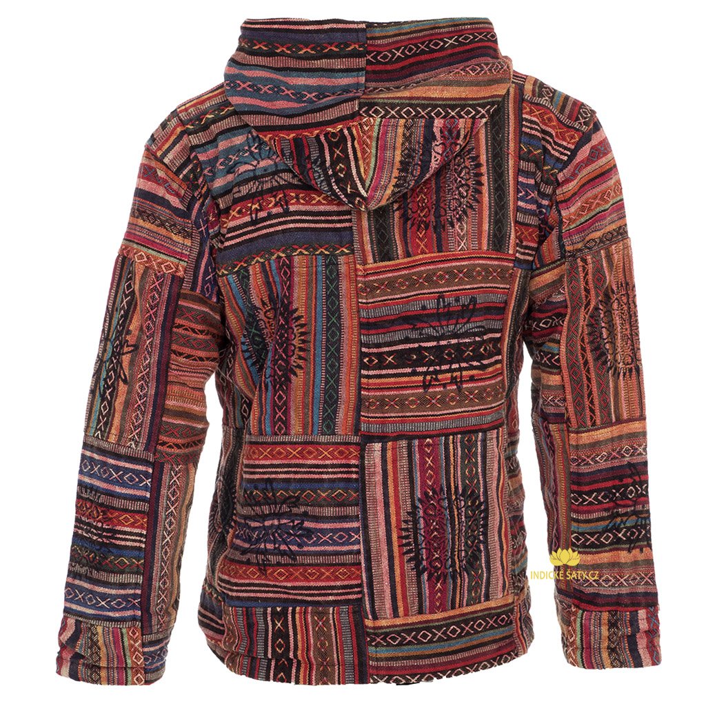 Tento kabát z Nepálu je ušitý z velmi pevné, festovní kabátové bavlny a podšitý fleesem (měkký a hřejivý materiál vyrobený z umělých vláken, dobře udržuje teplo, příjemný na nošení). Kabát je teplý, vhodný od podzimu do jara.