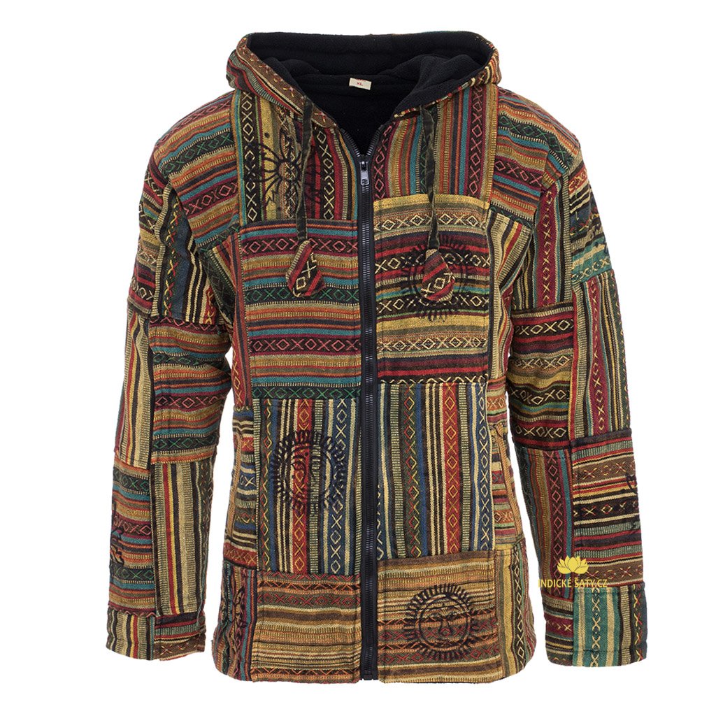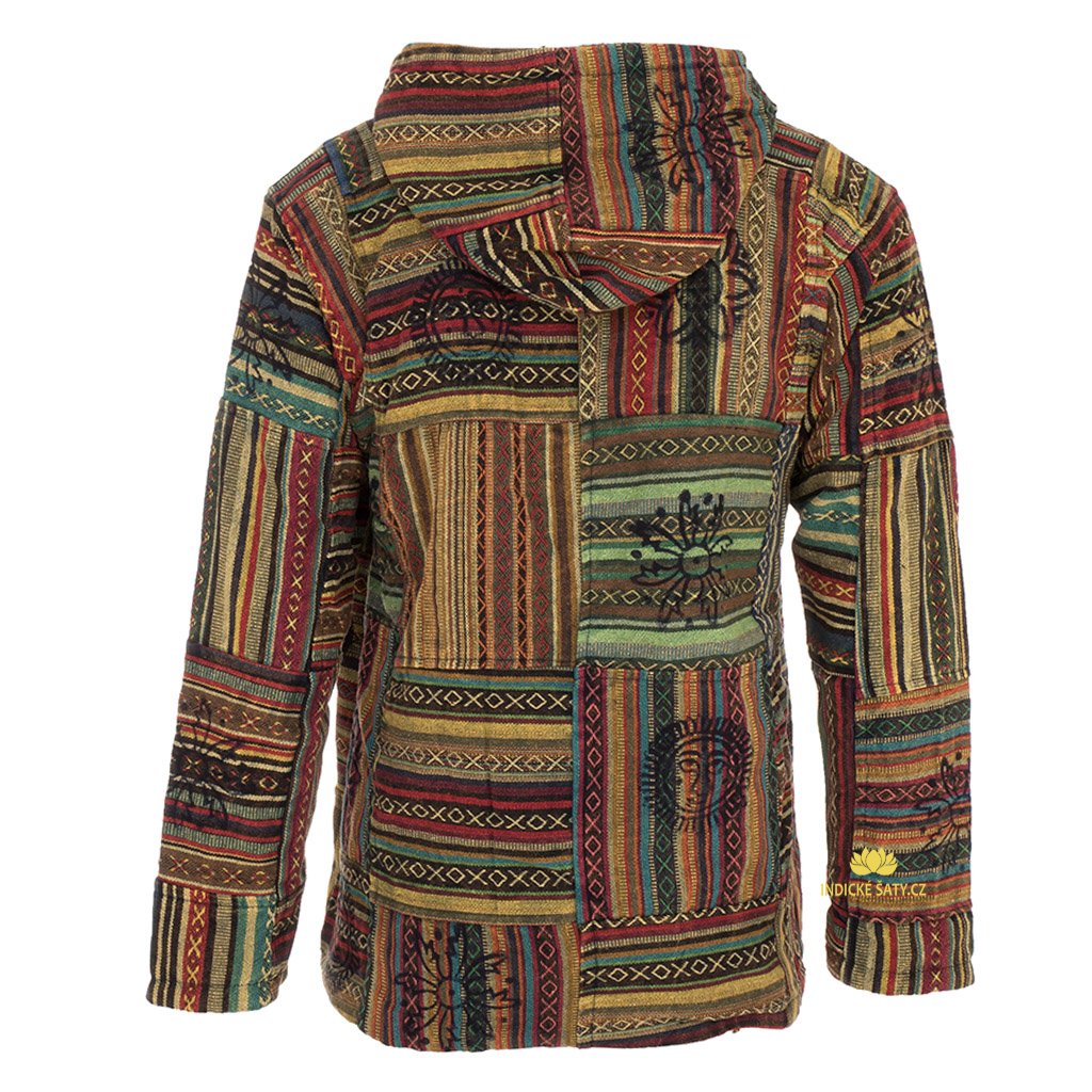 Tento kabát z Nepálu je ušitý z velmi pevné, festovní kabátové bavlny a podšitý fleesem (měkký a hřejivý materiál vyrobený z umělých vláken, dobře udržuje teplo, příjemný na nošení). Kabát je teplý, vhodný od podzimu do jara.