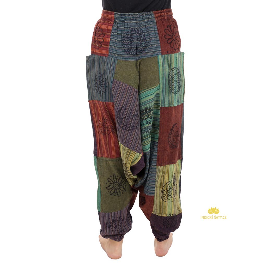 Harémové kalhoty s ručním tiskem, patchworkově šité z kvalitní bavlny. Více v popisu níže.