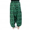 Tyto harémové kalhoty jsou ušité z lehké bavlny, látka je vzdušná, prodyšná, pevná. Harémky mají mantrový tisk, oboustranně stejný.