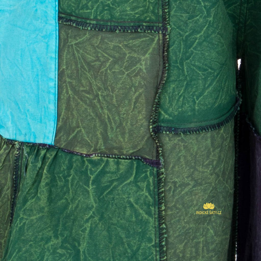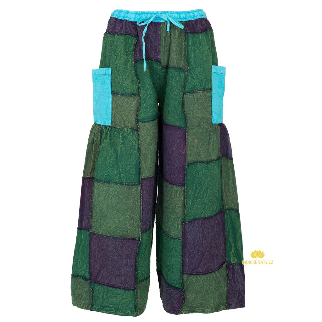Bavlněné kalhoty patchwork stonewash Nagar s širokými nohavicemi zelenomodré