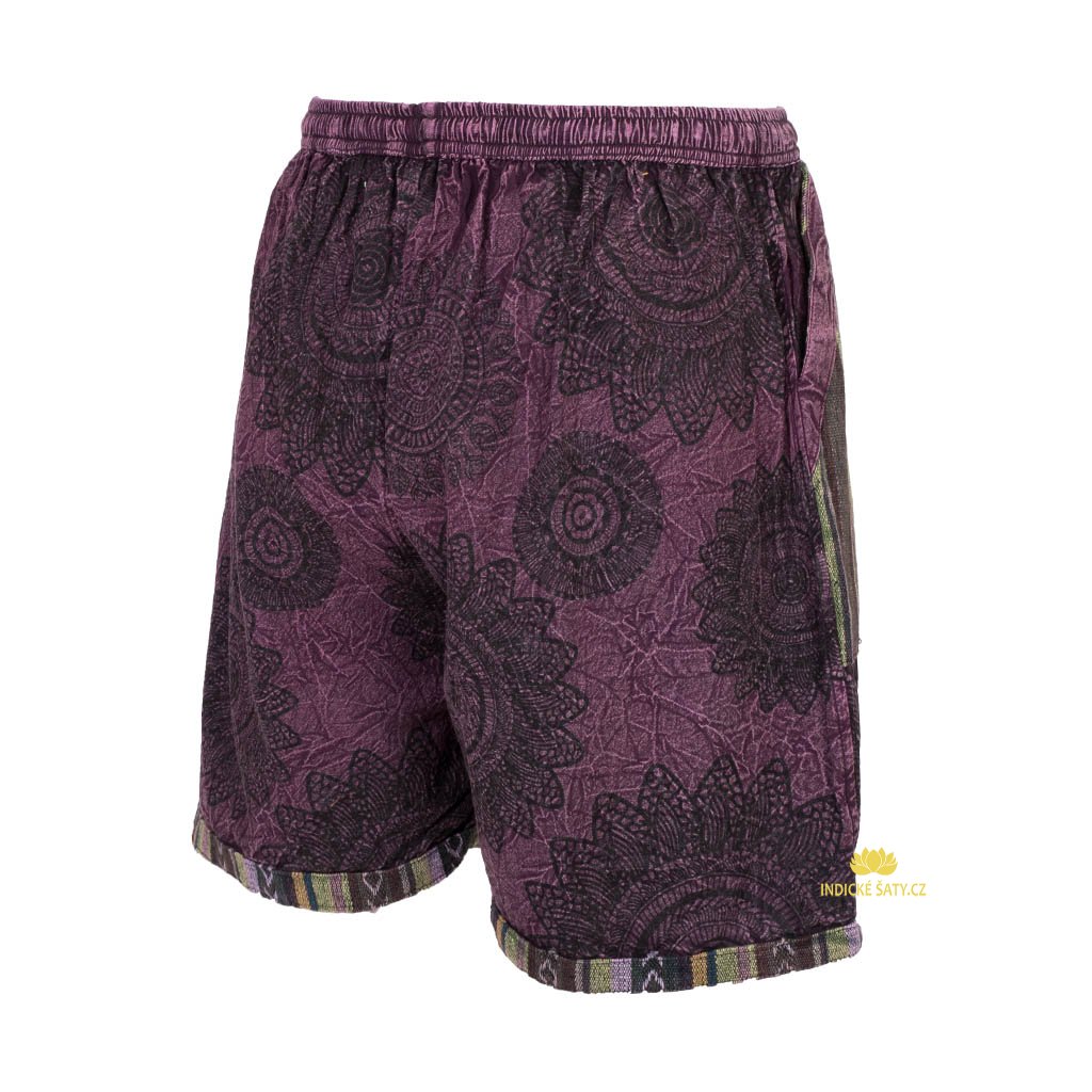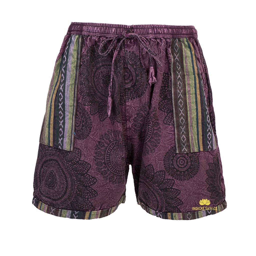 Bavlněné kraťasy stonewash Mandala tkané kapsy fialovovínové