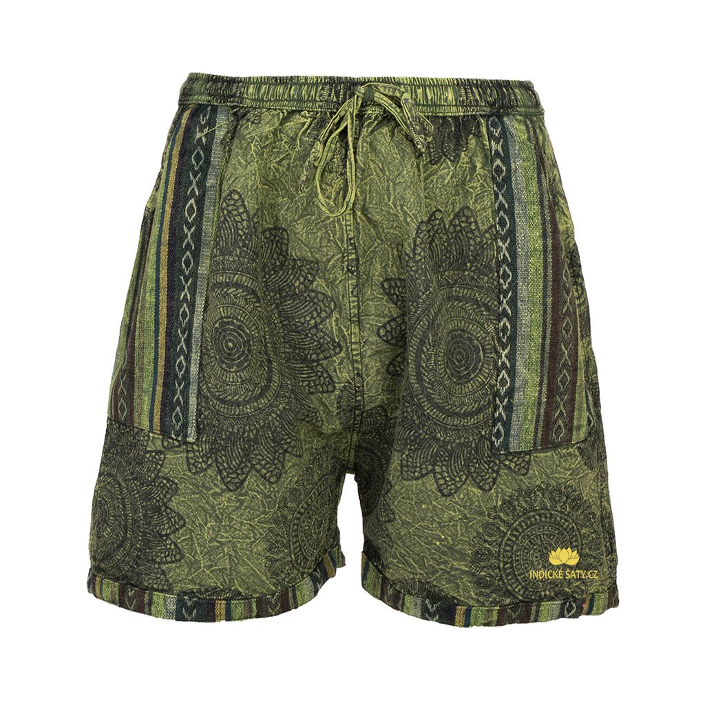 Bavlněné kraťasy stonewash Mandala tkané kapsy zelené