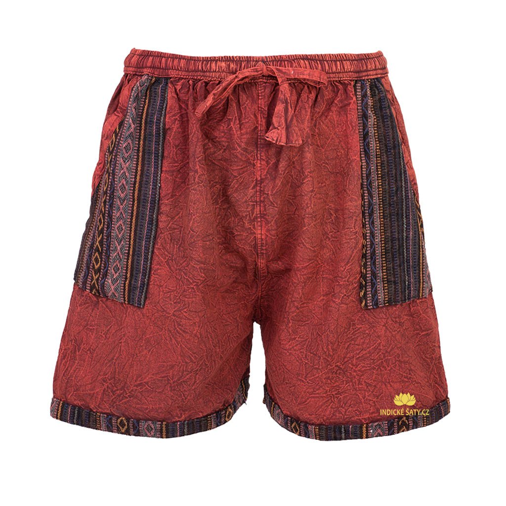 Bavlněné kraťasy stonewash tkané kapsy červené