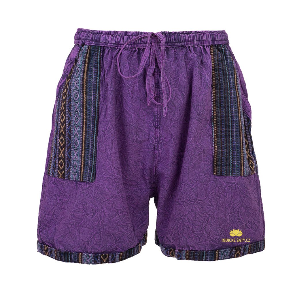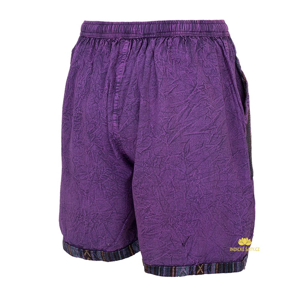 Bavlněné kraťasy stonewash tkané kapsy fialové