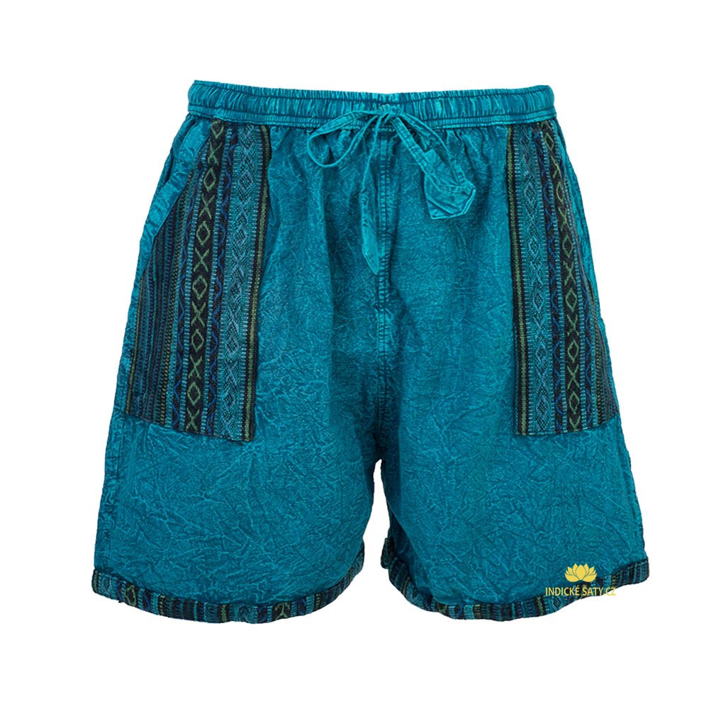 Bavlněné kraťasy stonewash tkané kapsy modré