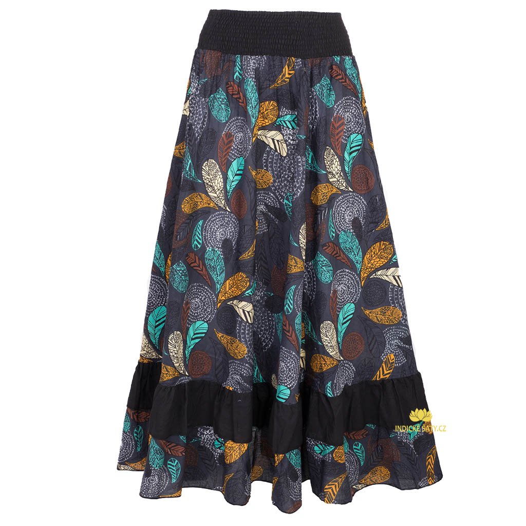 Dlouhá sukně z jemné vzorované bavlny s širokým žabičkováním v pase. Více v popisu níže.