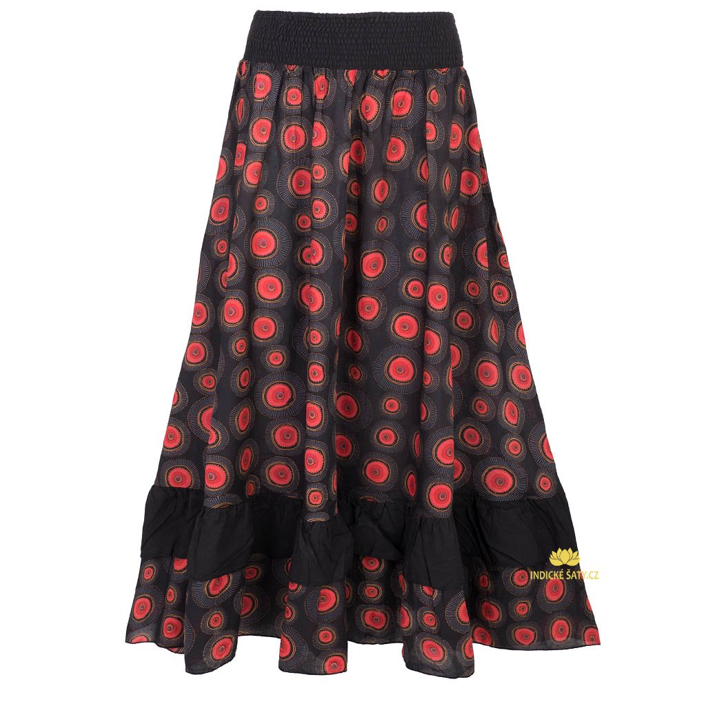 Dlouhá sukně z jemné vzorované bavlny s širokým žabičkováním v pase. Více v popisu níže.