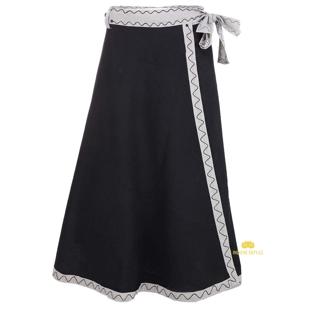 Dlouhá zavinovací sukně z bavlny jednobarevná černá