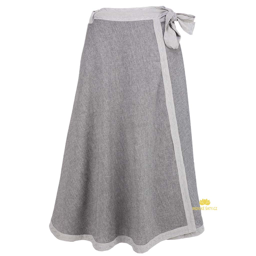Dlouhá zavinovací sukně z bavlny jednobarevná tmavě šedá