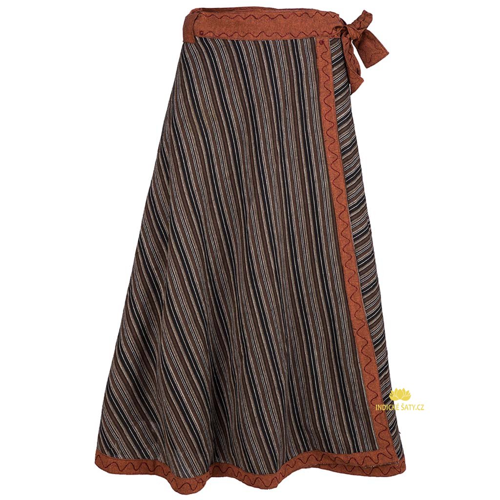 Dlouhá zavinovací sukně z bavlny pruhovaná hnědá