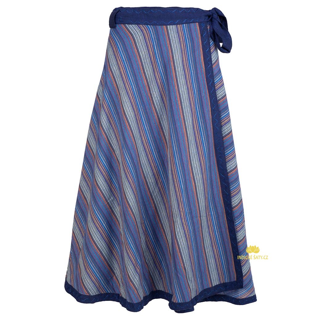 Dlouhá zavinovací sukně z bavlny pruhovaná modrá