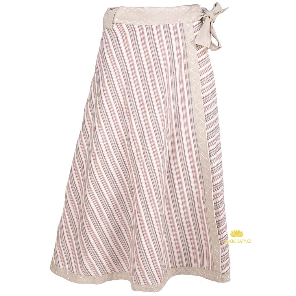 Dlouhá zavinovací sukně z bavlny pruhovaná světlá
