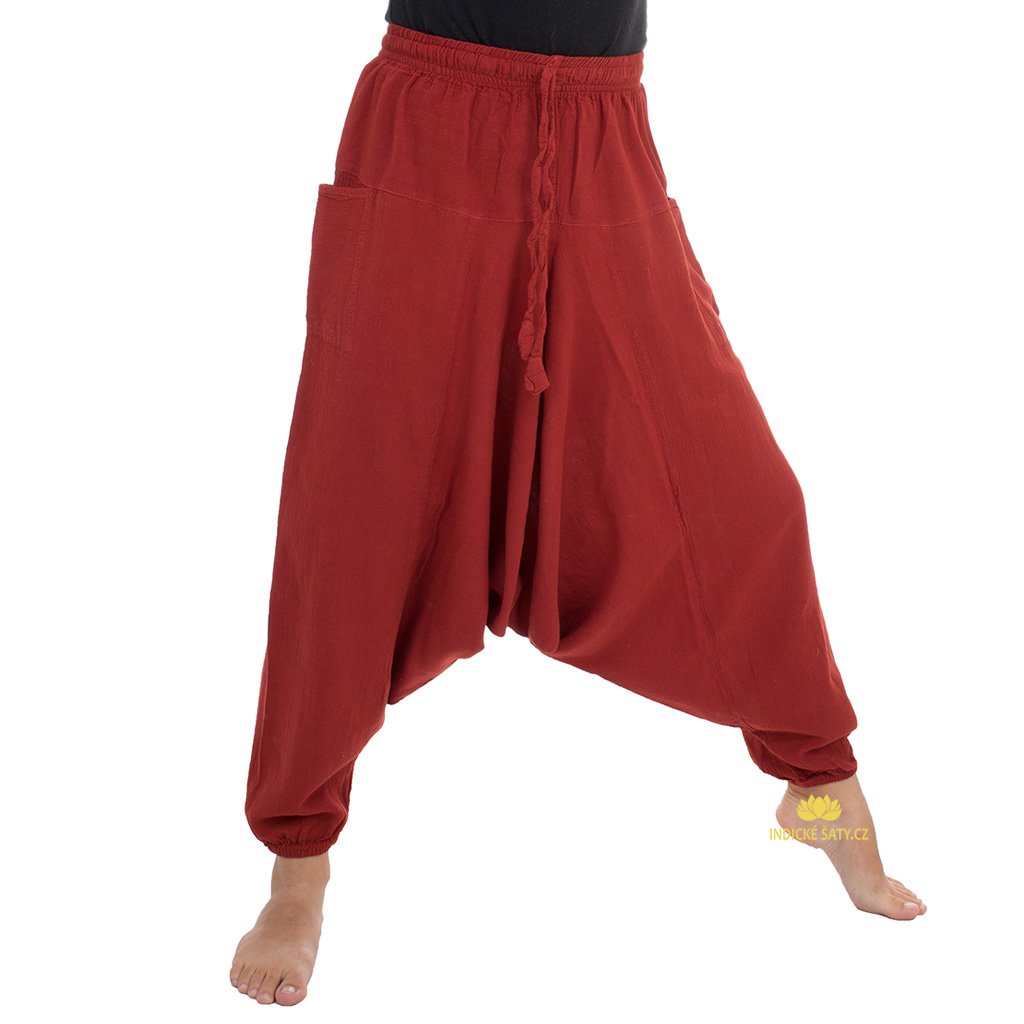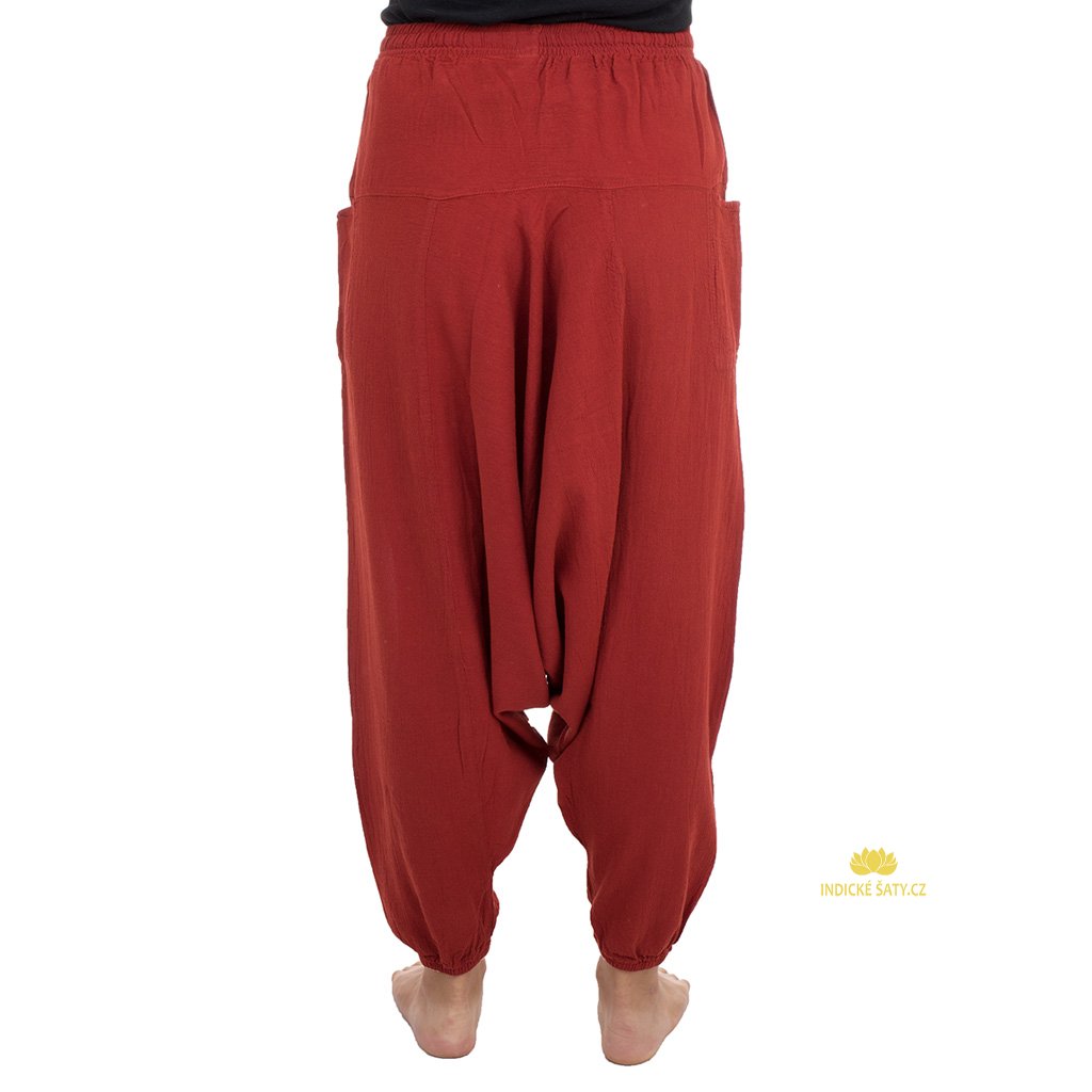 Tyto harémové kalhoty jsou ušité z velmi kvalitní bavlny, výrobci v Nepálu označovaná jako organická. Látka je mírně krepová, lehká a vzdušná, přesto velmi pevná a odolná, neprůhledná, mimořádně přijemná na omak. Kvalita této látky zaručuje dlouhou životnost výrobku.