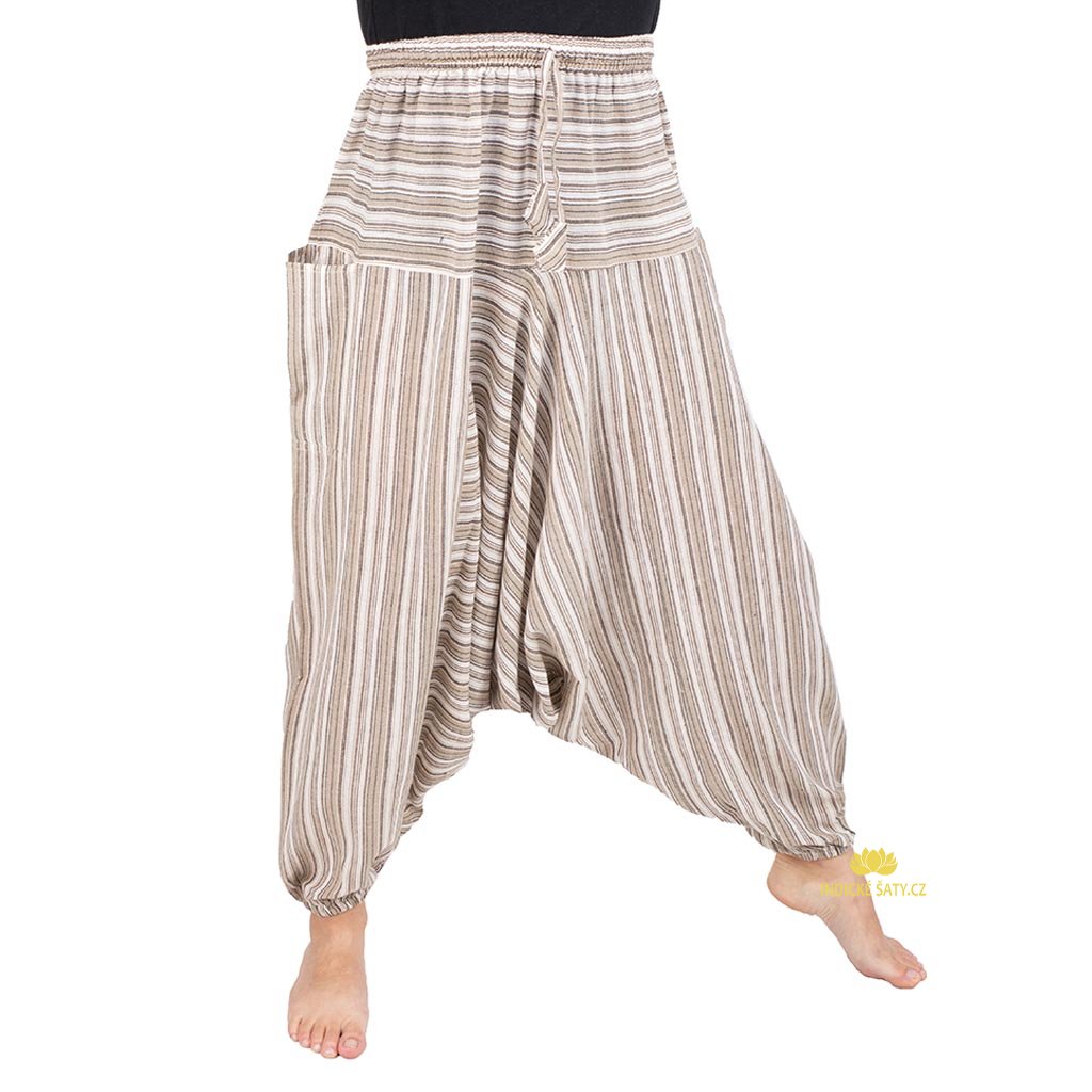 Harémové kalhoty z lehké bavlny pruhované světlé