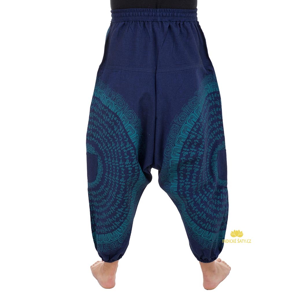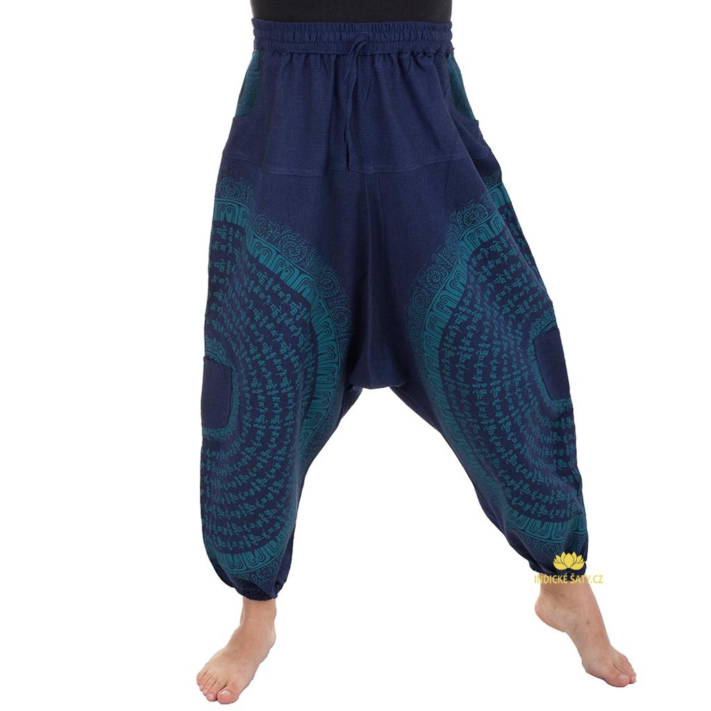 Unisex harémové kalhoty ušité z pevné a odolné bavlny zdobené mantrovým tiskem. Více v popisu níže.