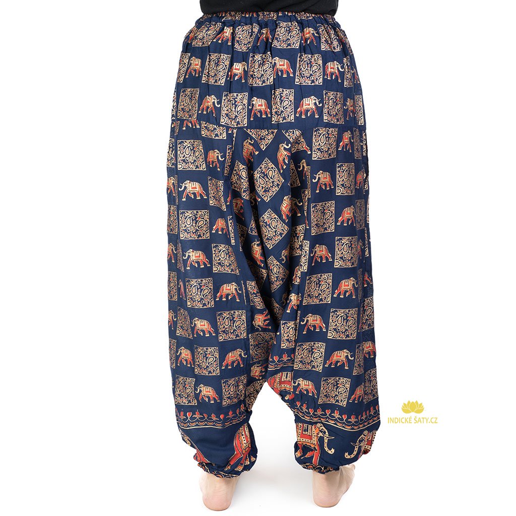 Tyto harémové kalhoty jsou ušité ze vzdušného pohodlného rayonu. Kalhoty mají slonový tisk ve zlatočervené barvě, který je z obou stran stejný.
