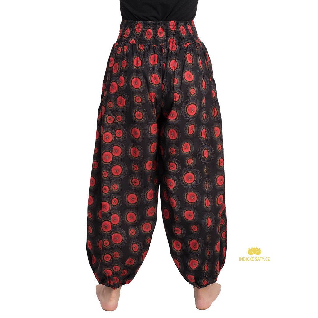 Kalhoty ušité z jemné bavlny s širokými nohavicemi a žabičkováním v pase. Více v popisu níže.