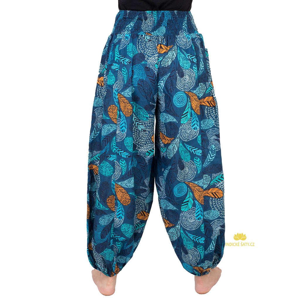 Kalhoty ušité z jemné bavlny s širokými nohavicemi a žabičkováním v pase. Více v popisu níže.