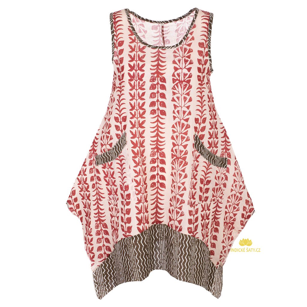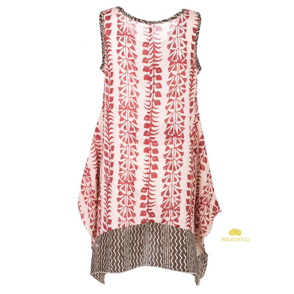 Indické šaty z jemné bavlny cípaté béžovočervené