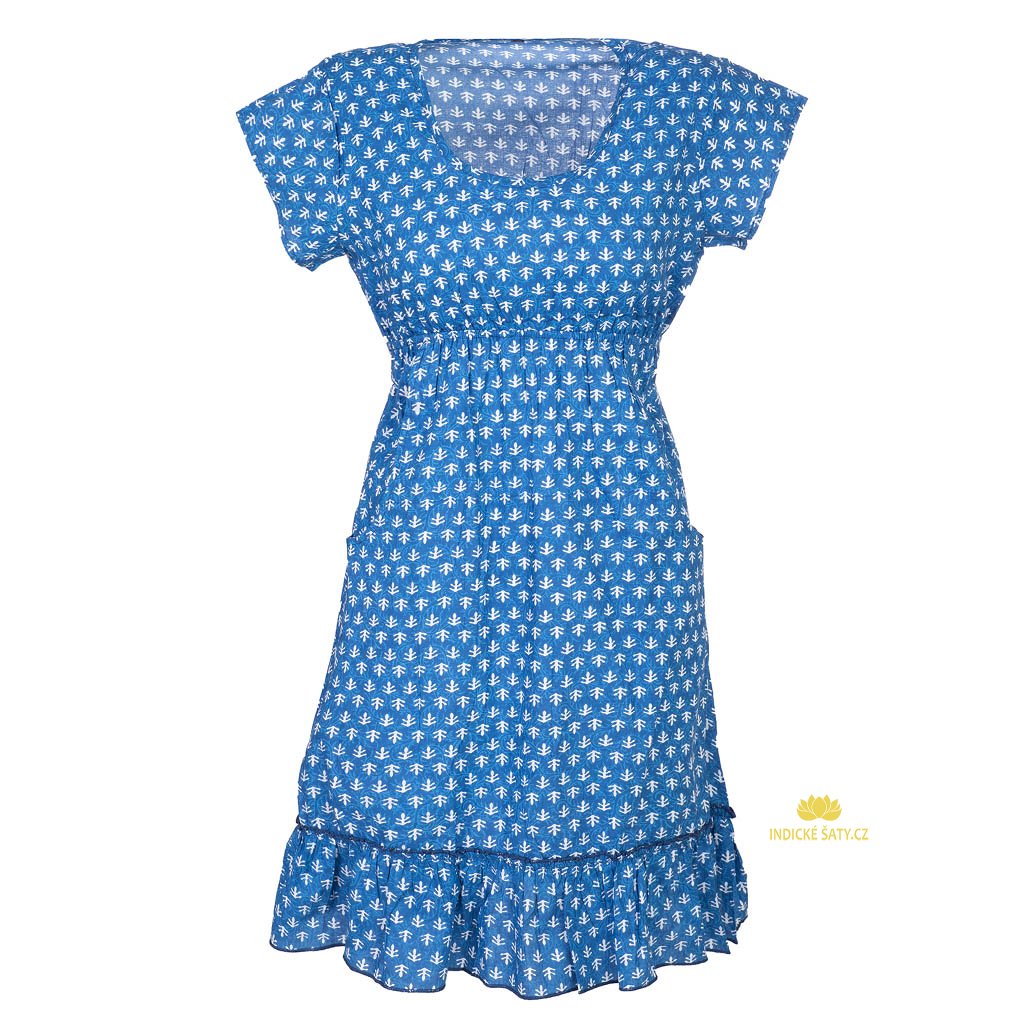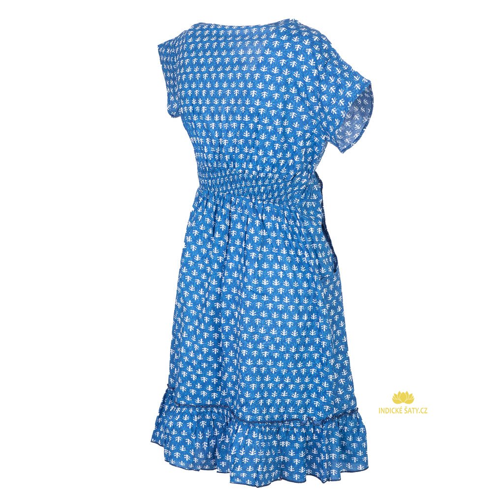 Indické šaty z jemné bavlny s rukávky modré