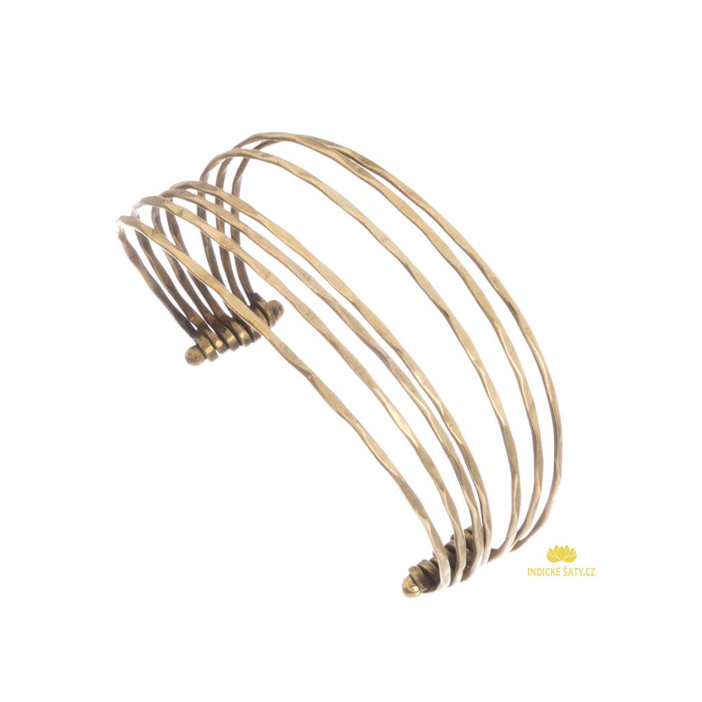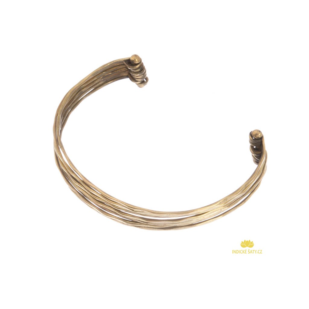 Tento Indický náramek je vyrobený ze 7 mosazných pásků, které jsou vyklepávané, na koncích spojené (tedy pásky jsou volné pohyblivé). Náramek je leštěný, tenčí (síla materiálu se pohybuje kolem 1-3 mm), lehce tvarovatelný. Náramek je na ruce lehký, přesto pevný a hezky zpracovaný.
