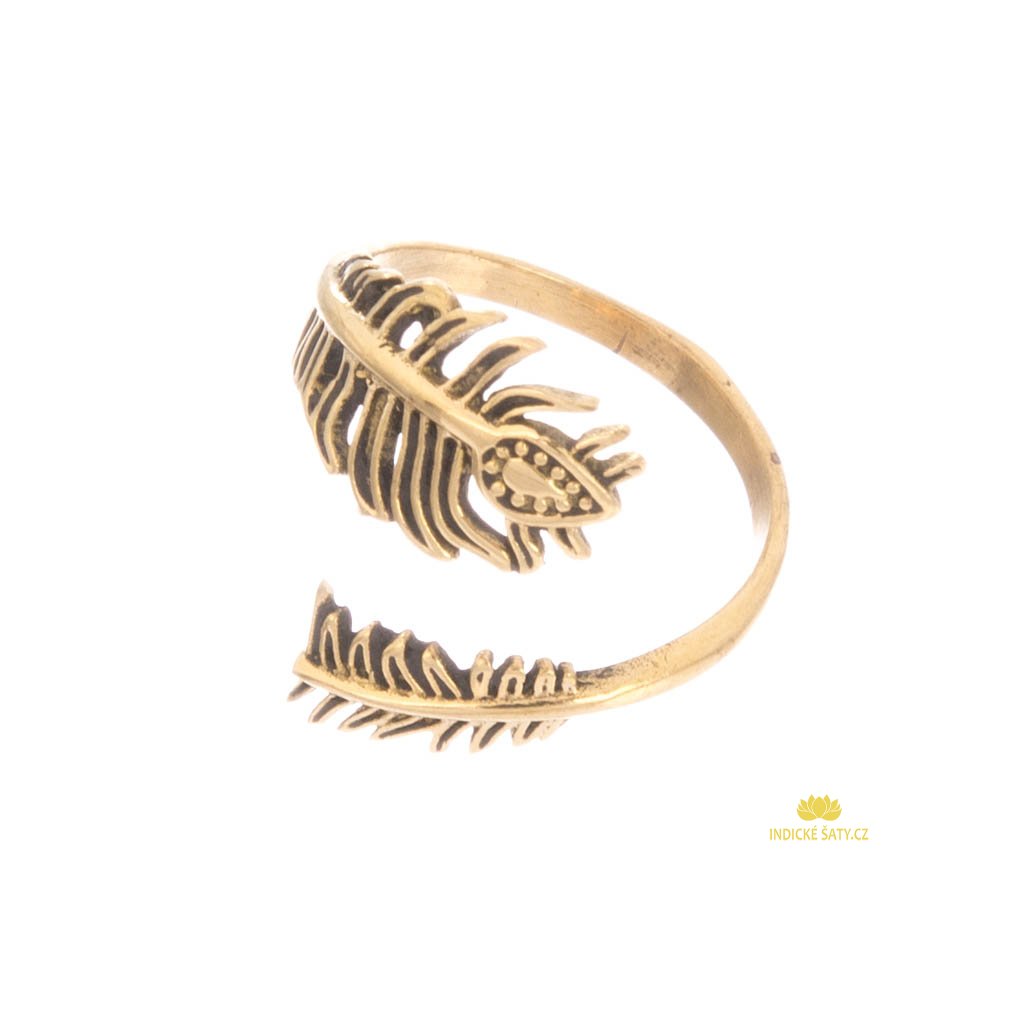 Indický prsten z mosazi peříčko