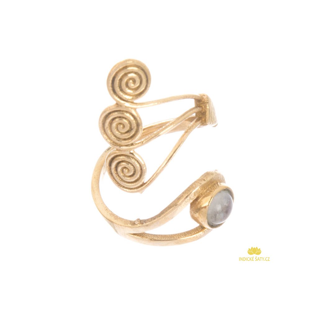 Indický prsten z mosazi spirály s měsíčním kamenem