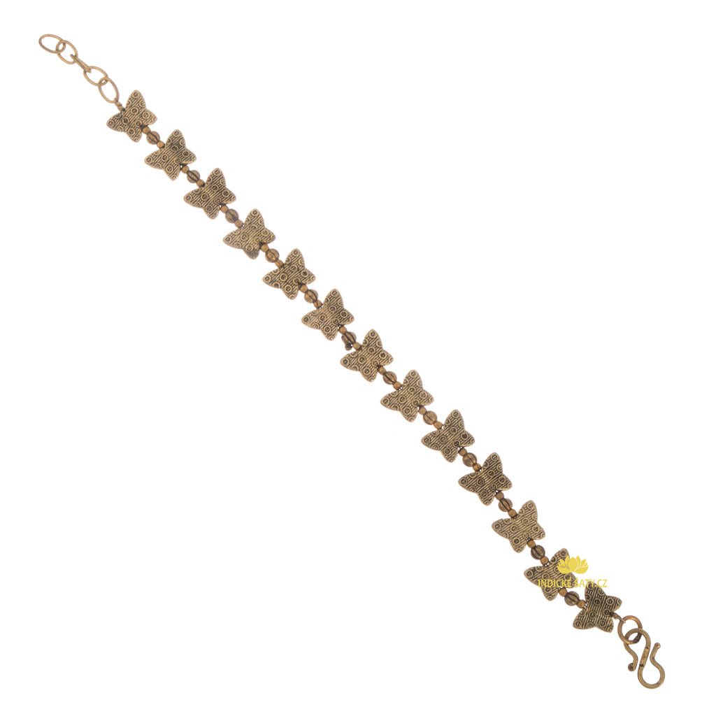 Tento indický náramek je vyrobený z mosazných komponentů navlečených na pevném ohebném drátku. Díky tomu se náramek snadno ohýbá, je pevný a nehrozí roztržení (při běžném užívání). Zapínání je řešeno na S háček a několik oček na druhé straně (díky tomu je pro více velikostí).