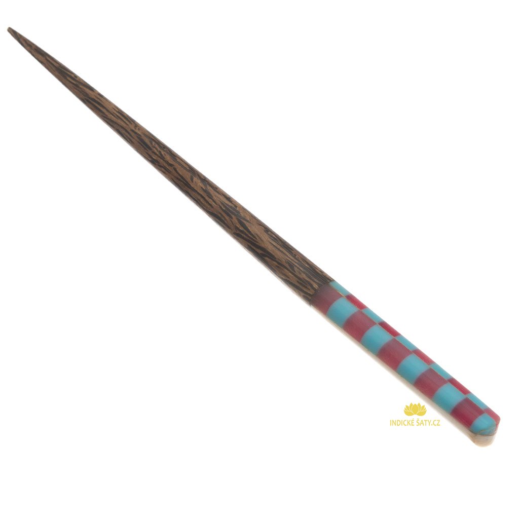 Tato jehlice je vyrobená z kokosového dřeva, na konci zdobená. Jehlice se zúžuje do špičky.