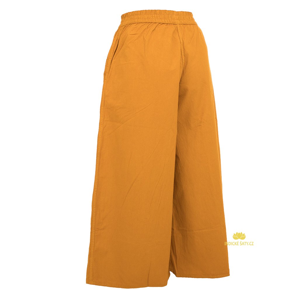Kalhoty s širokými nohavicemi z pevnější bavlny Organic hořčicové