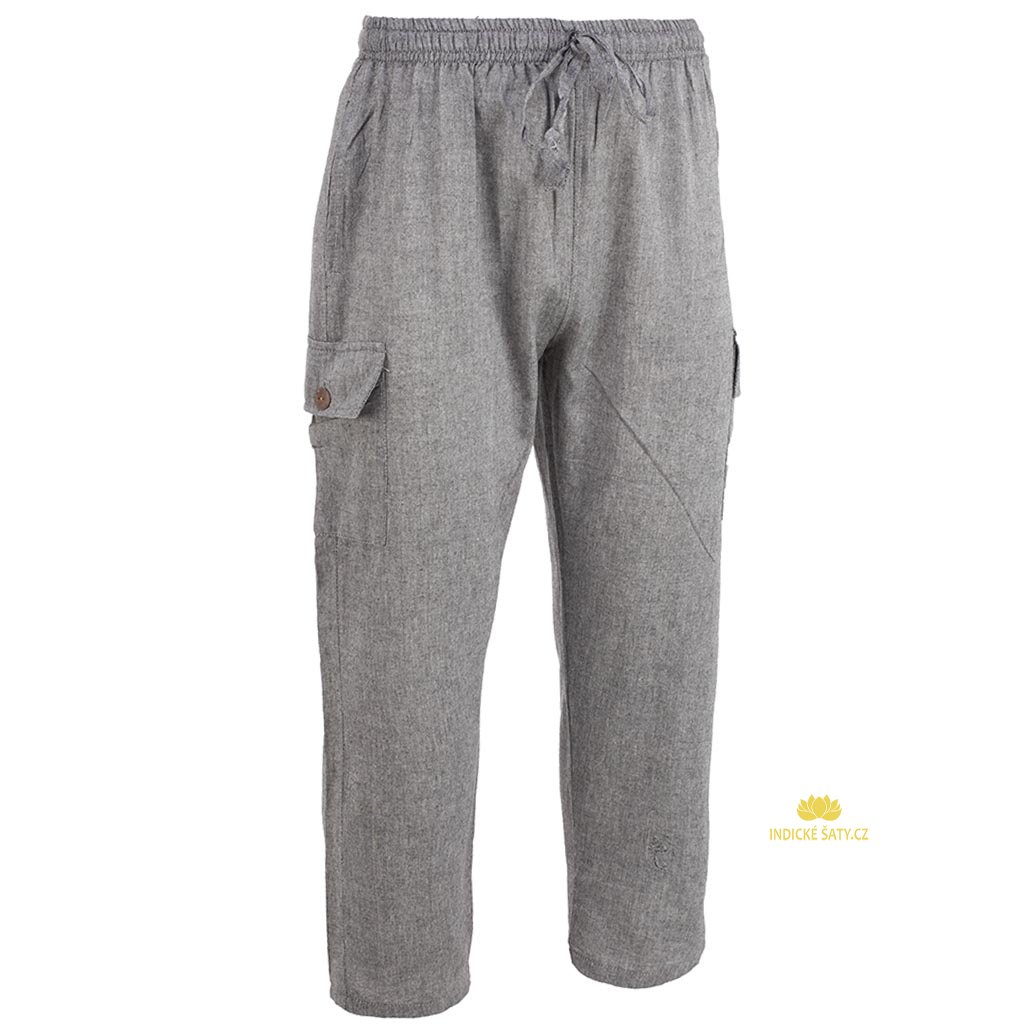 Tyto kalhoty z Nepálu jsou ušité ze 100% lehčí bavlny. Látka je pevná, vzdušná, příjemná na omak, připomínající lehčí plátno, neprůhledná. Více o materiálech se můžete dočíst ve článku Látky, malý rozscestník