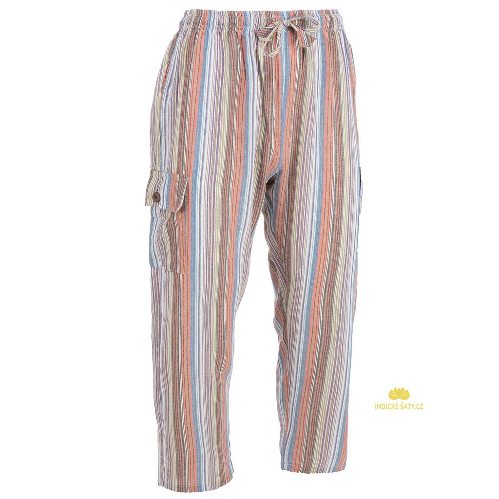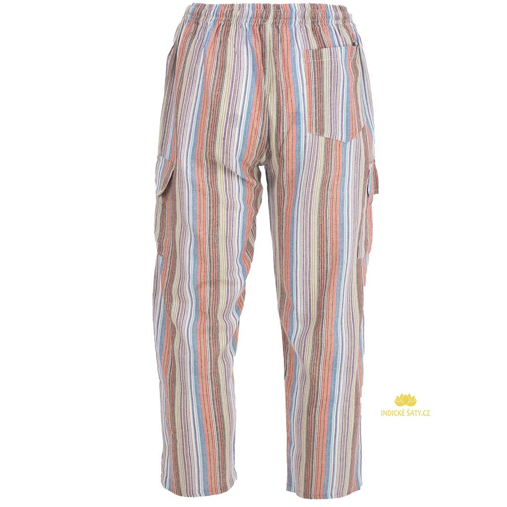 Klasické kalhoty z bavlny 5 kapes pruhované barevné
