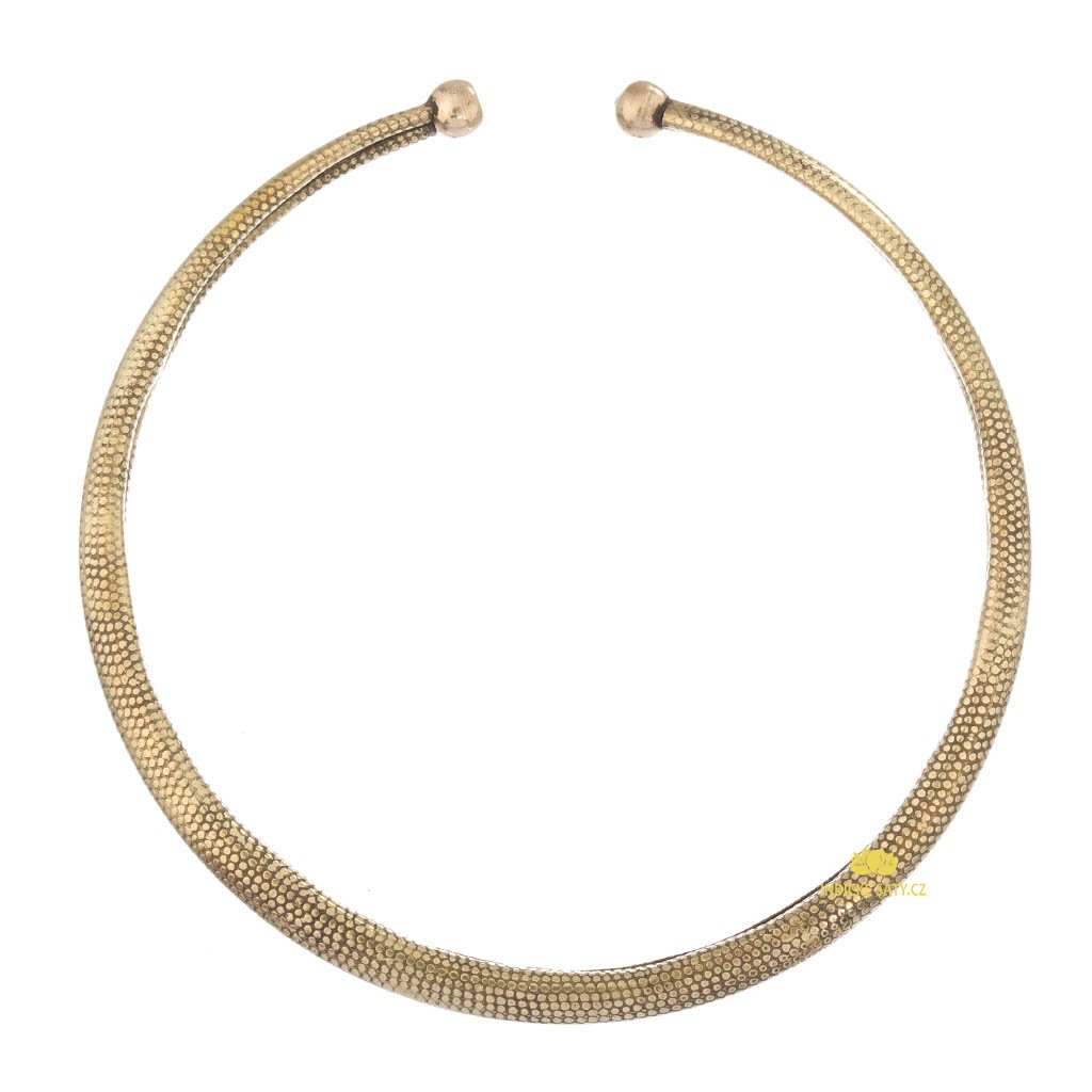 Náhrdelník je vyroben z pevné, přesto lehce ohebné mosazi. Povrch náhrdelníku je zdoben dekorem a ukončem mosaznými kuličkami.