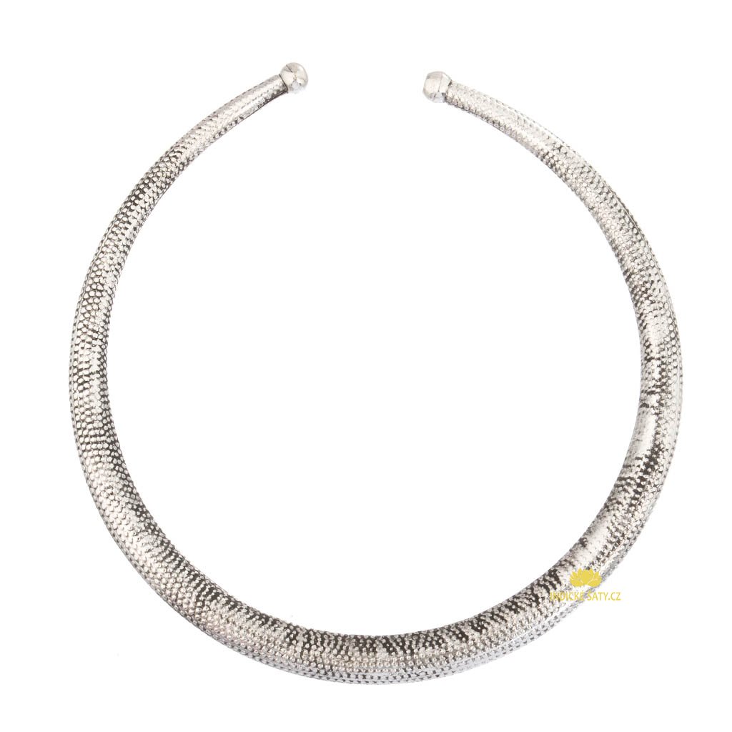 Náhrdelník je vyroben z pevné, přesto lehce ohebné alpaky. Povrch náhrdelníku je zdoben dekorem a ukončem kovovými kuličkami.