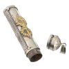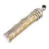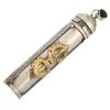 Je otevírací (horní část se závěsem je otevírací na bajonet), můžete do něj umístit něco pro vás důležitého (originálně slouží k ukládání psaných či tištěných manter / modliteb). Přívěšek má po obou straných ornament.