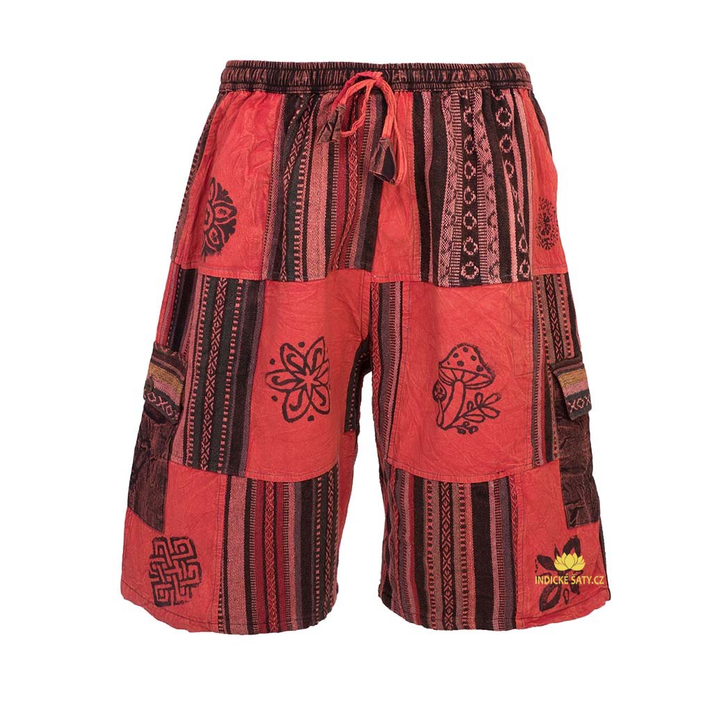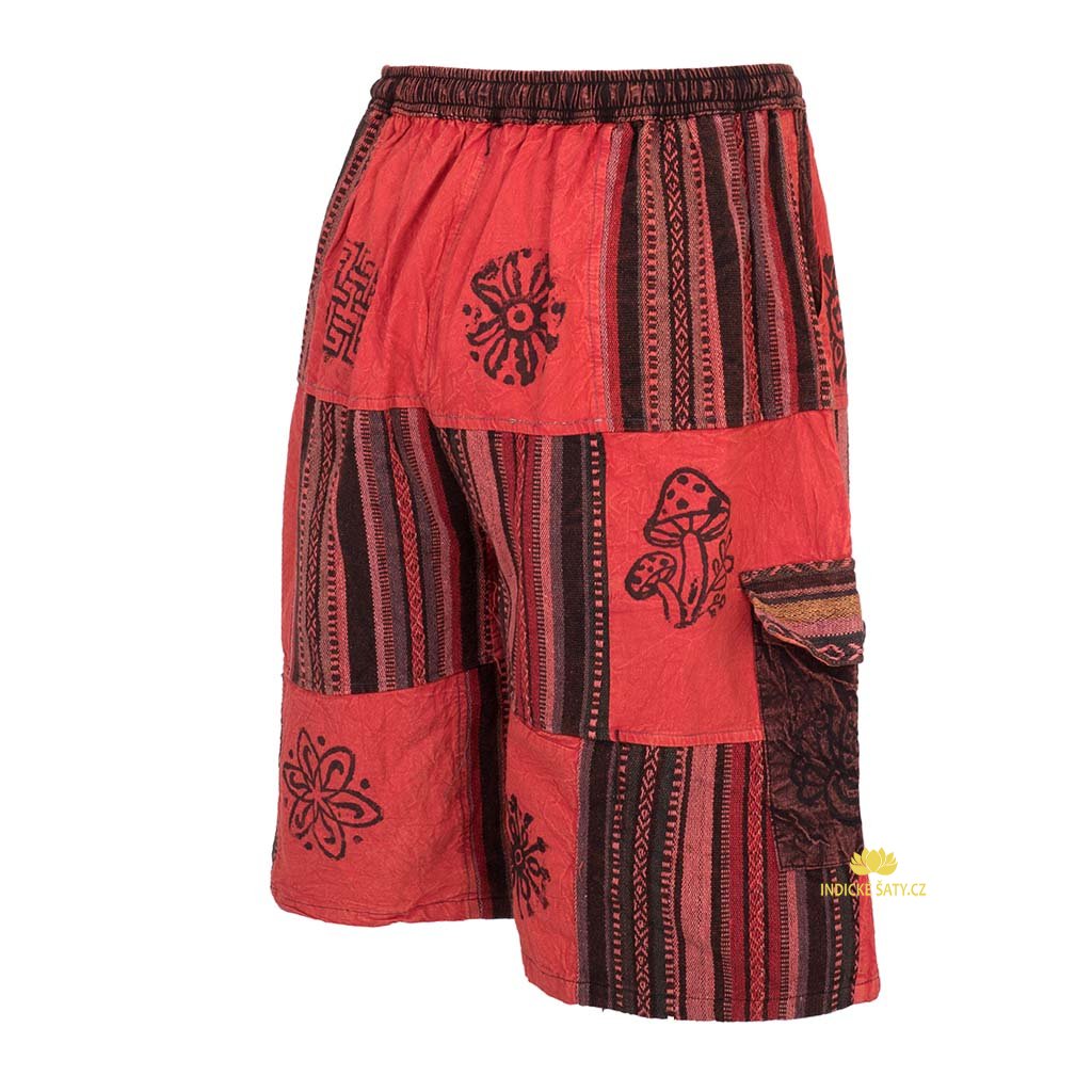 Kraťasy z pevné bavlny, ke kolenům, patchworkově šité. Více v popisu níže.
