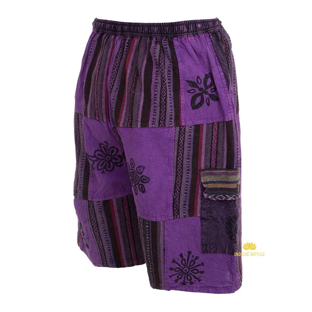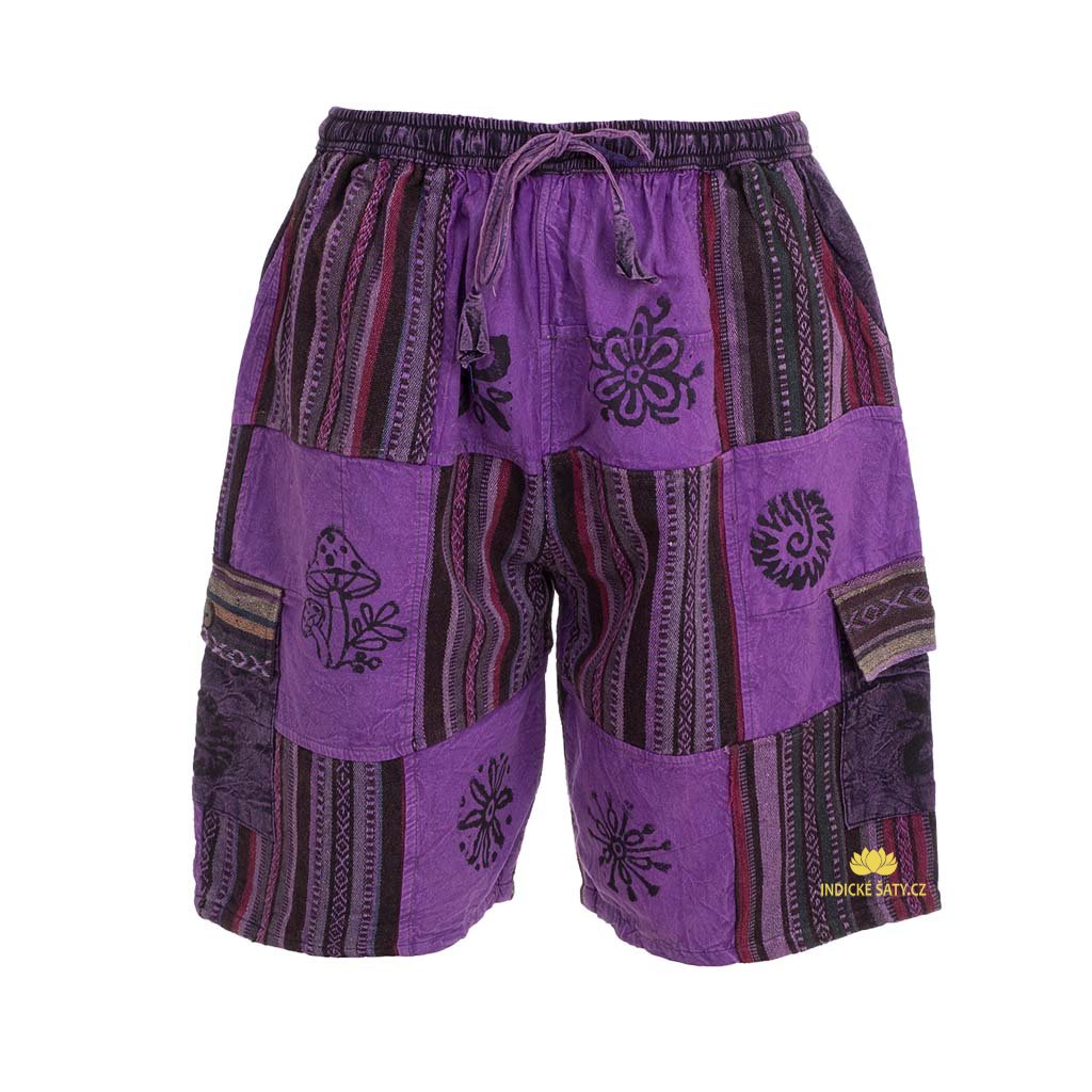 Kraťasy z pevné bavlny, ke kolenům, patchworkově šité. Více v popisu níže.