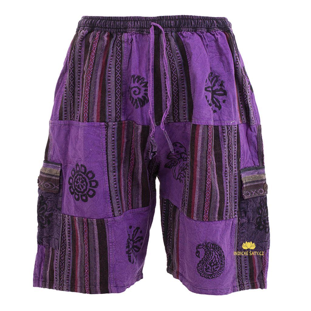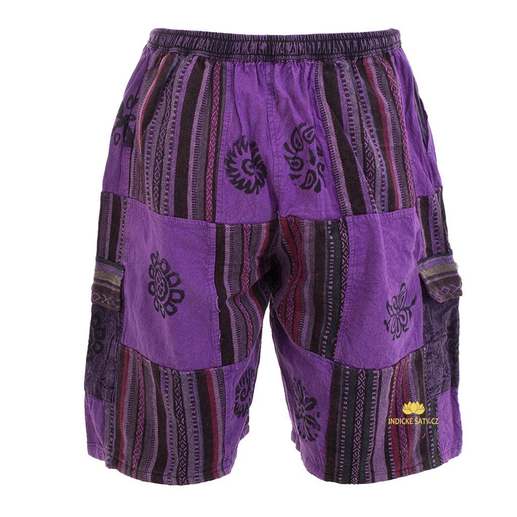 Kraťasy patchwork stonewash tisk fialové