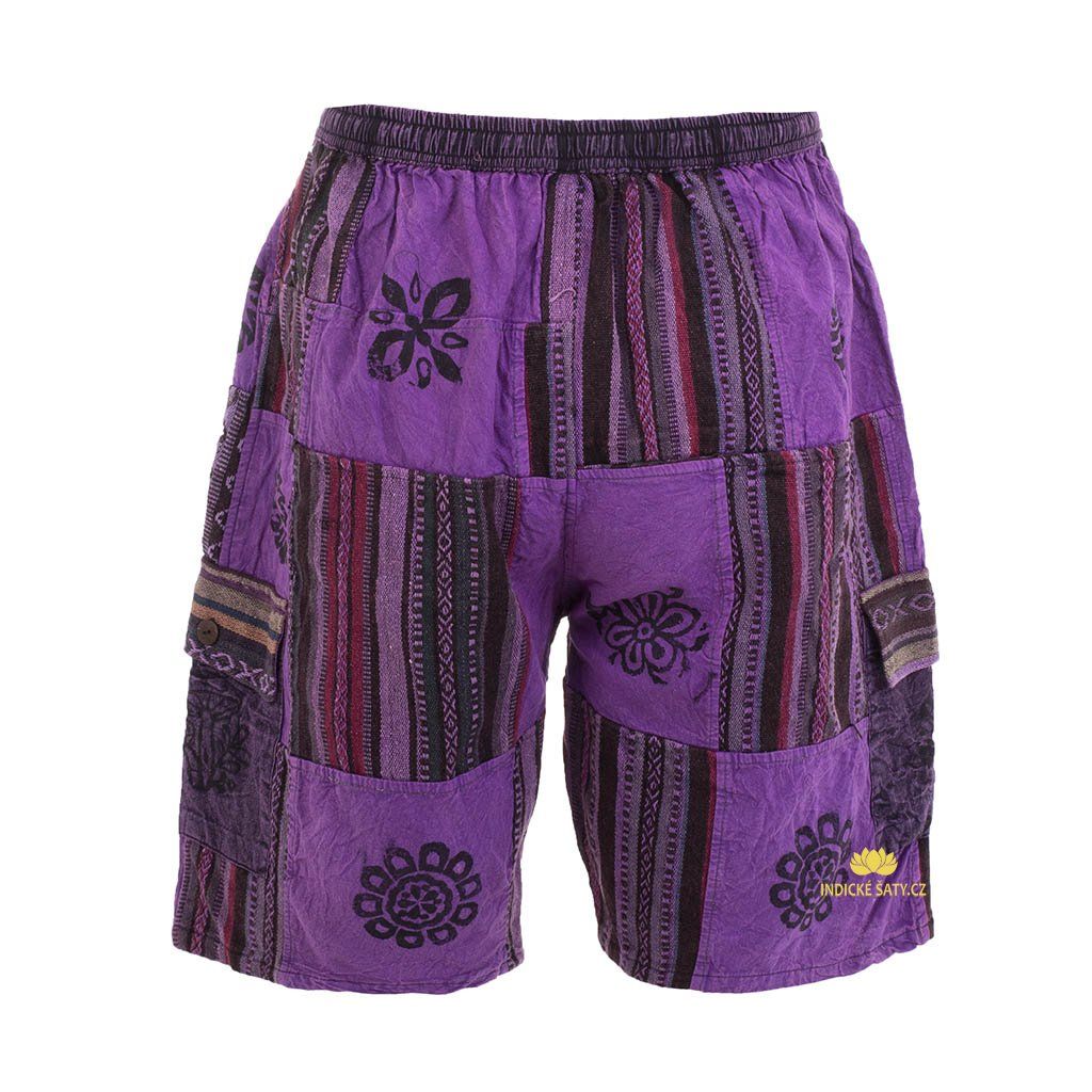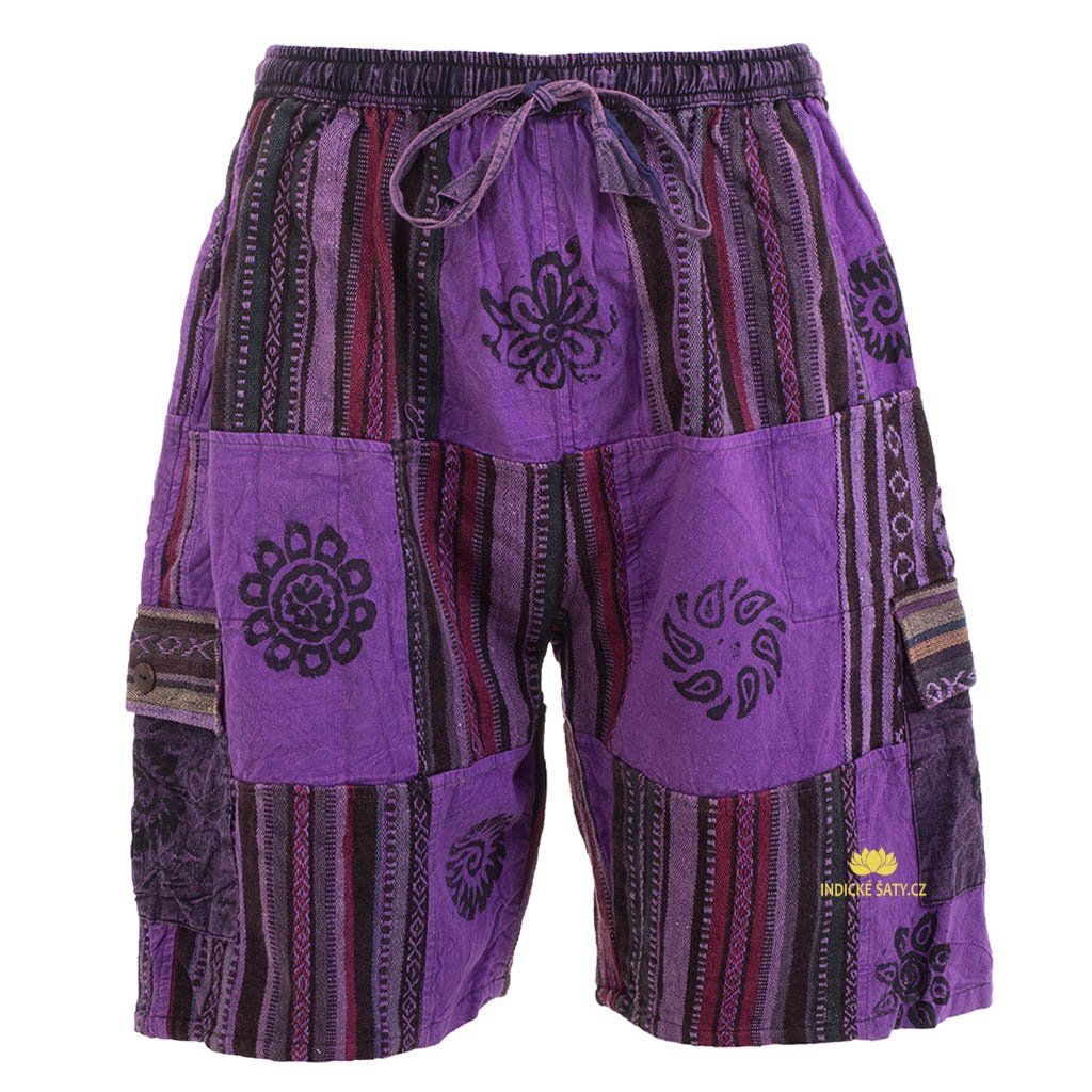 Kraťasy z pevné bavlny, ke kolenům, patchworkově šité. Více v popisu níže.