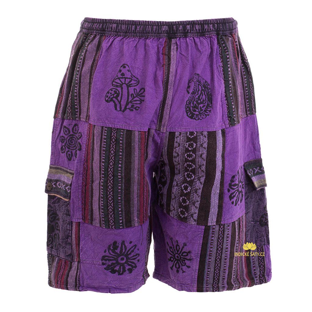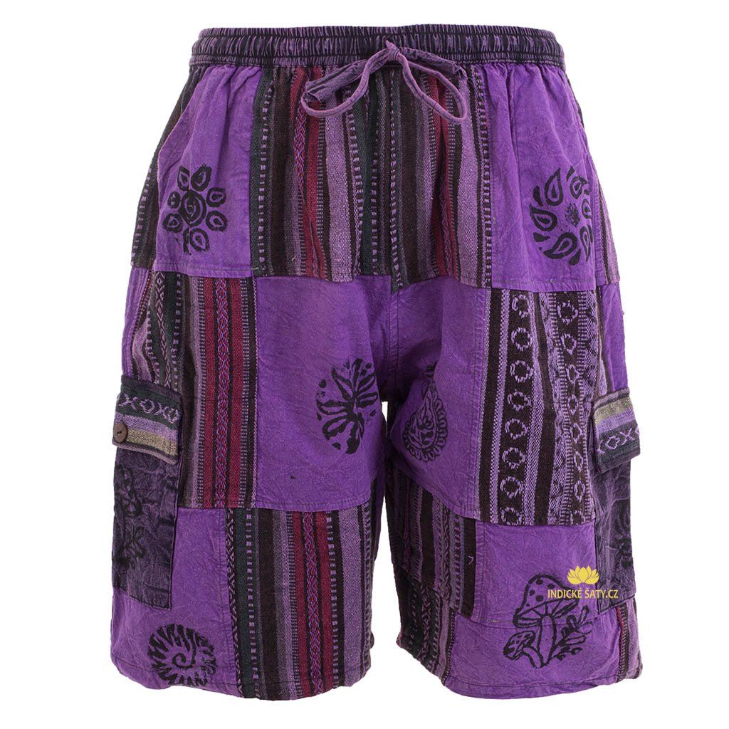Kraťasy z pevné bavlny, ke kolenům, patchworkově šité. Více v popisu níže.