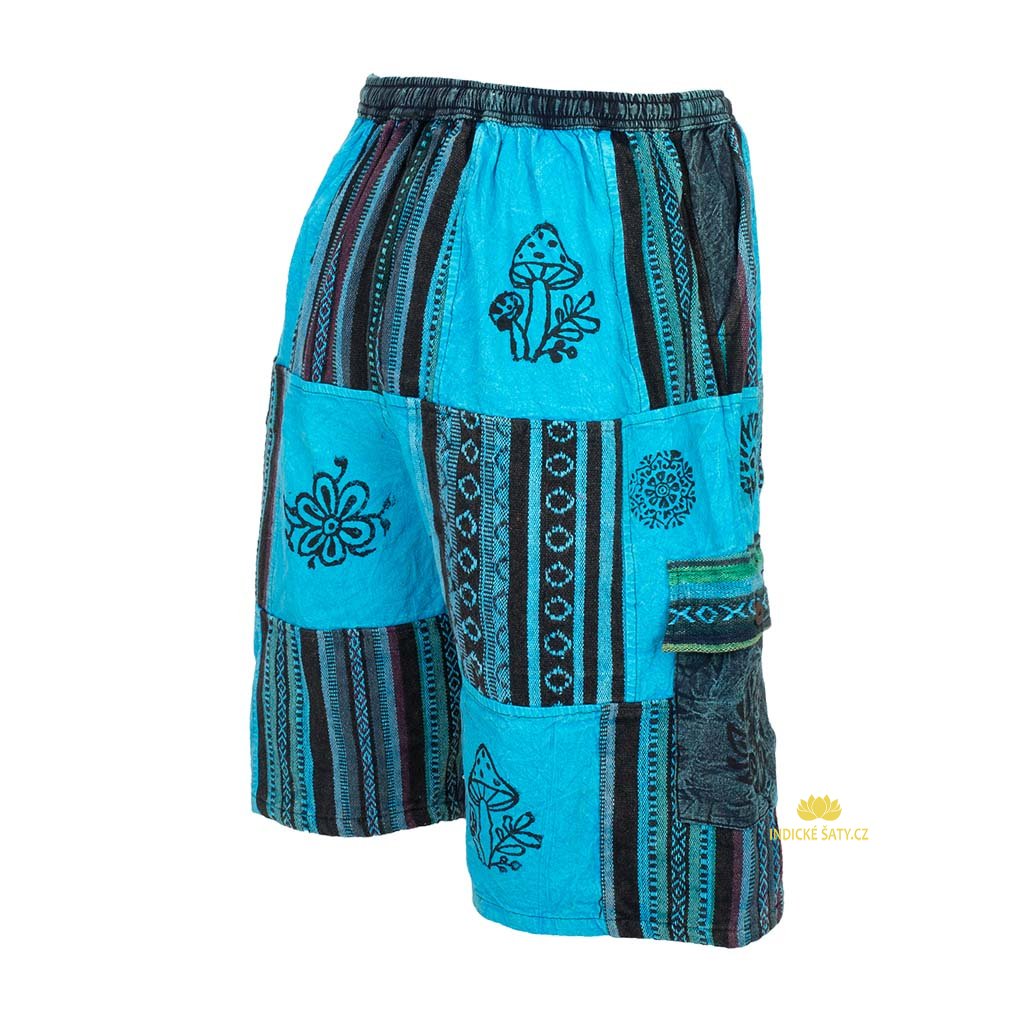 Kraťasy z pevné bavlny, ke kolenům, patchworkově šité. Více v popisu níže.
