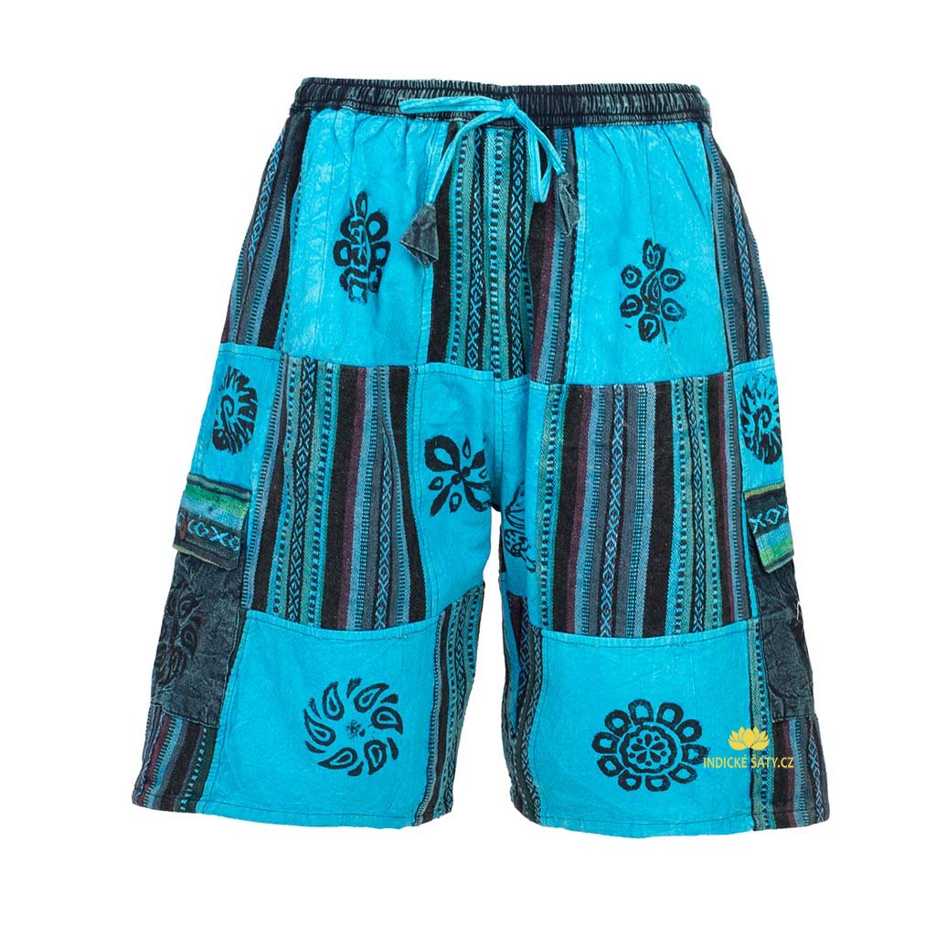 Kraťasy patchwork stonewash tisk modré