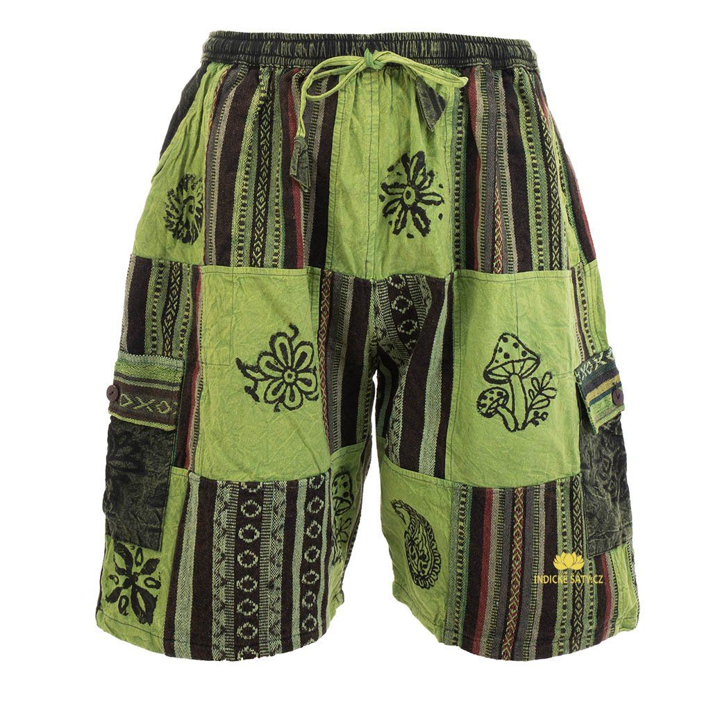 Kraťasy z pevné bavlny, ke kolenům, patchworkově šité. Více v popisu níže.
