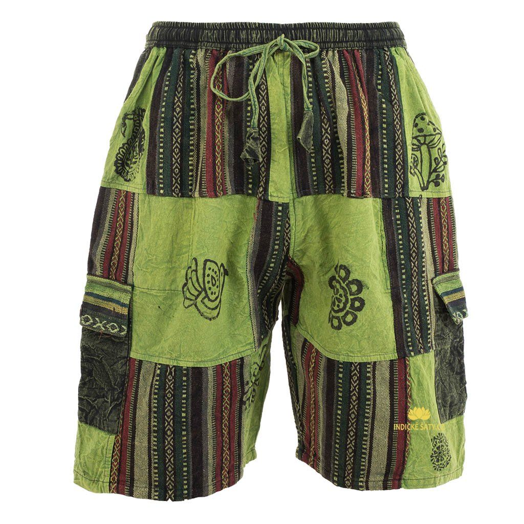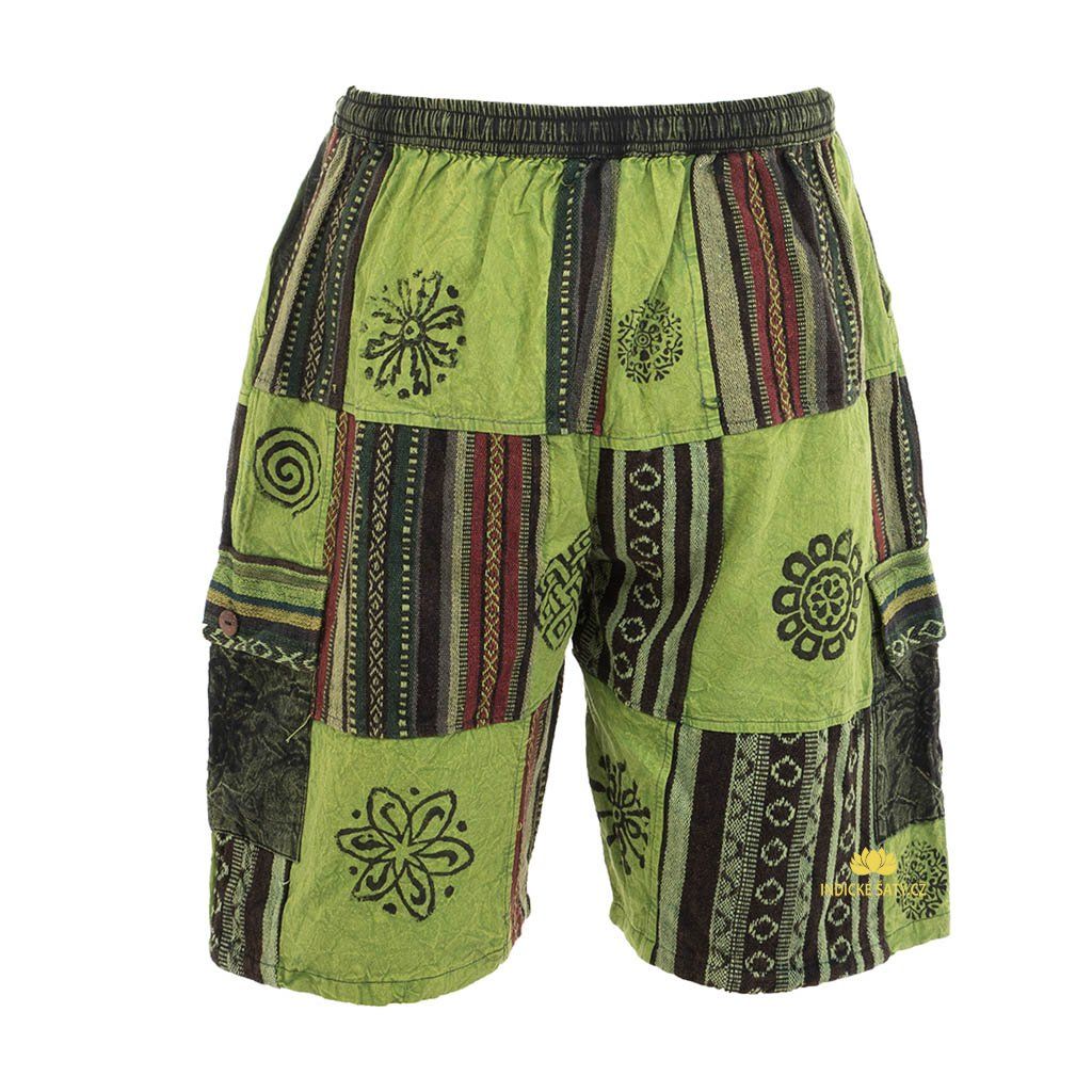 Kraťasy patchwork stonewash tisk zelené