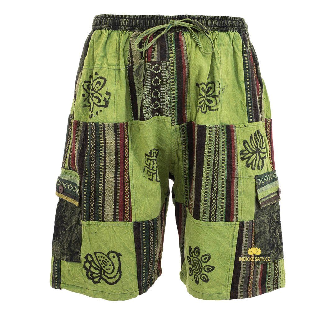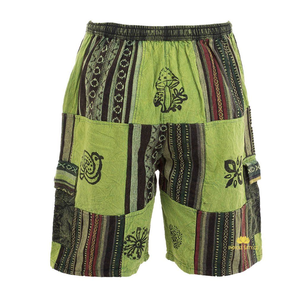Kraťasy z pevné bavlny, ke kolenům, patchworkově šité. Více v popisu níže.