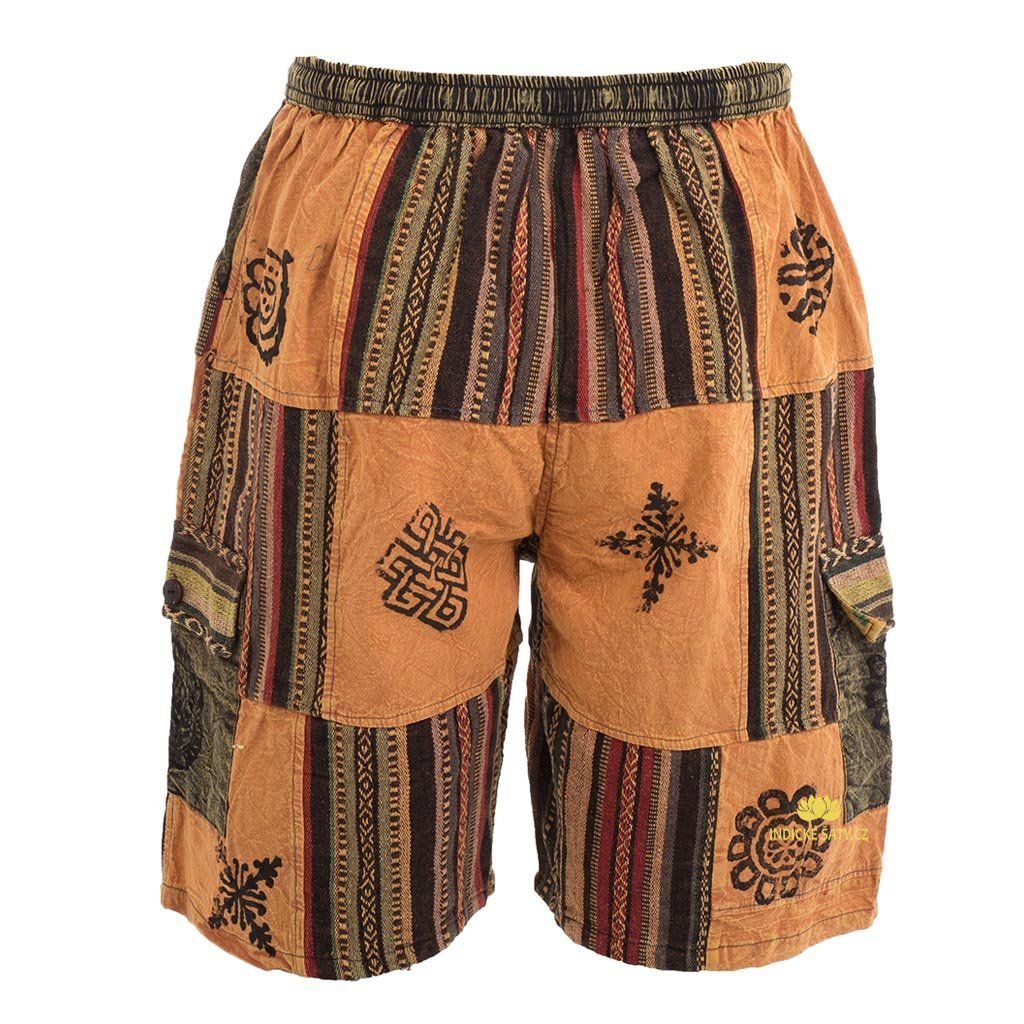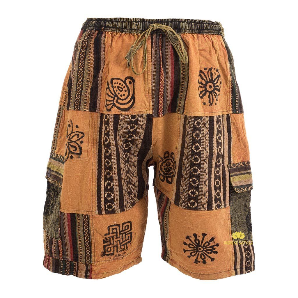 Kraťasy z pevné bavlny, ke kolenům, patchworkově šité. Více v popisu níže.