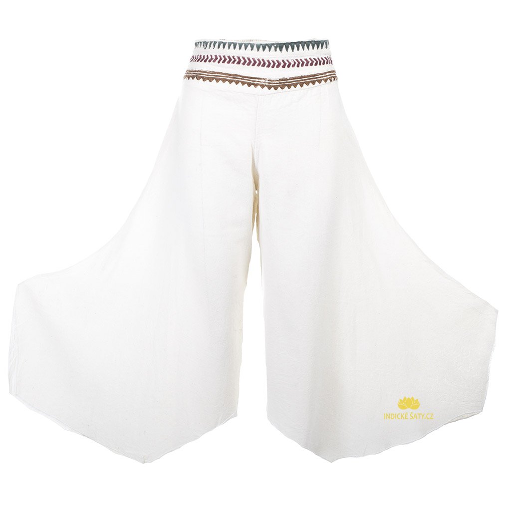 Křídlaté kalhoty z bavlny s ručním tiskem bílé